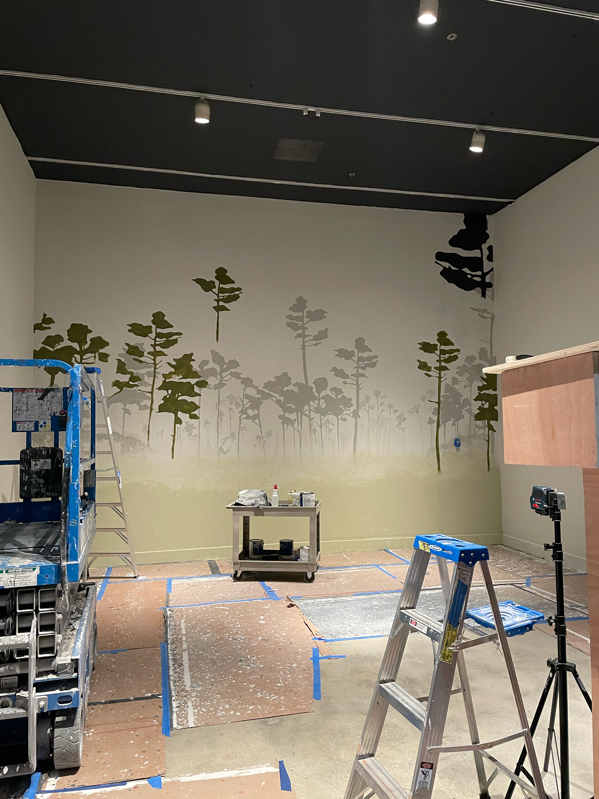 There was also illustrated large scale wall graphics that I created to align with the visual language of the Mythic Creatures marketing campaign while remaining mindful of production and paint budget constraints. Working closely with the in-house exhibition preparation team that helped translate my designs into hand painted environments that brought the space to life.