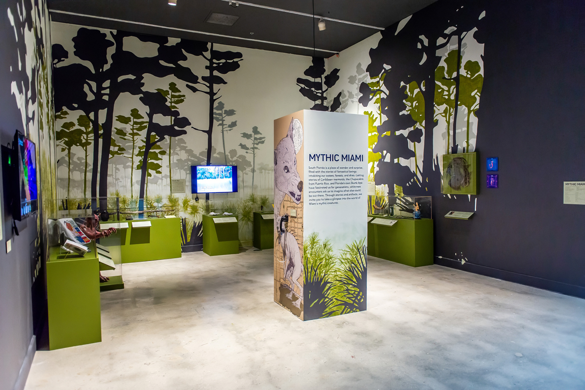 Mythic Miami was a companion exhibition developed by the HistoryMiami Museum exhibition team to run alongside Mythic Creatures: Dragons, Unicorns& Mermaids, highlighting South Florida folklore and urban legends from El Chupacabra to La Sirena and the Skunk Ape. The goal was to present a more localized exploration of the topic to create a stronger sense of connection for visitors.