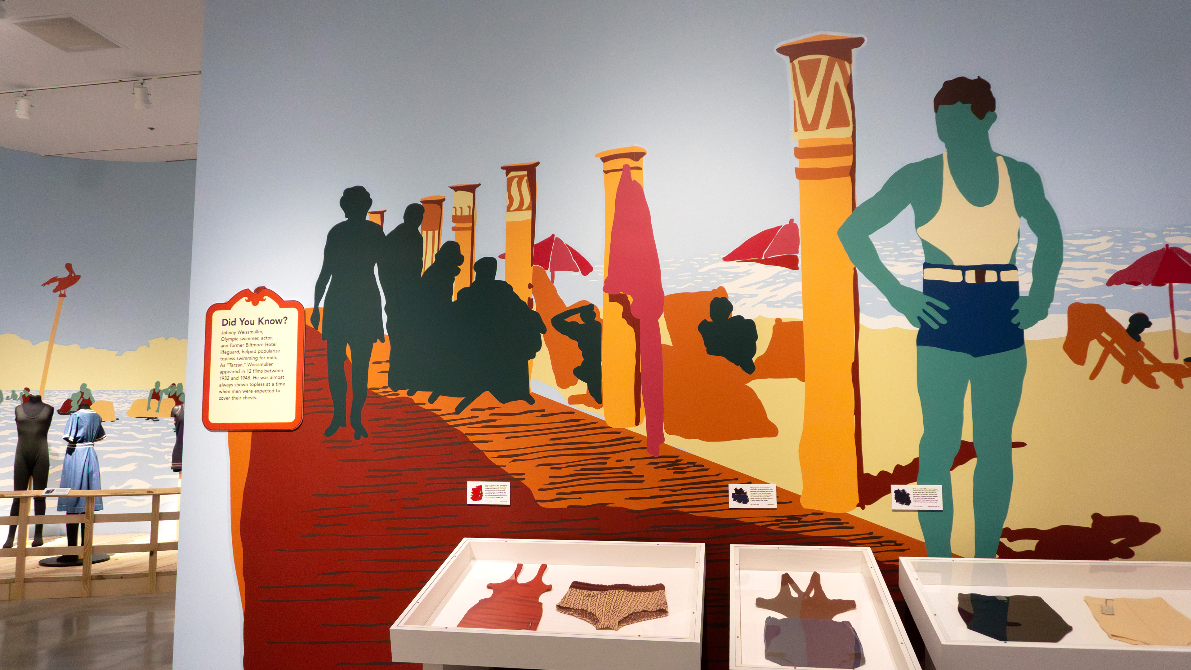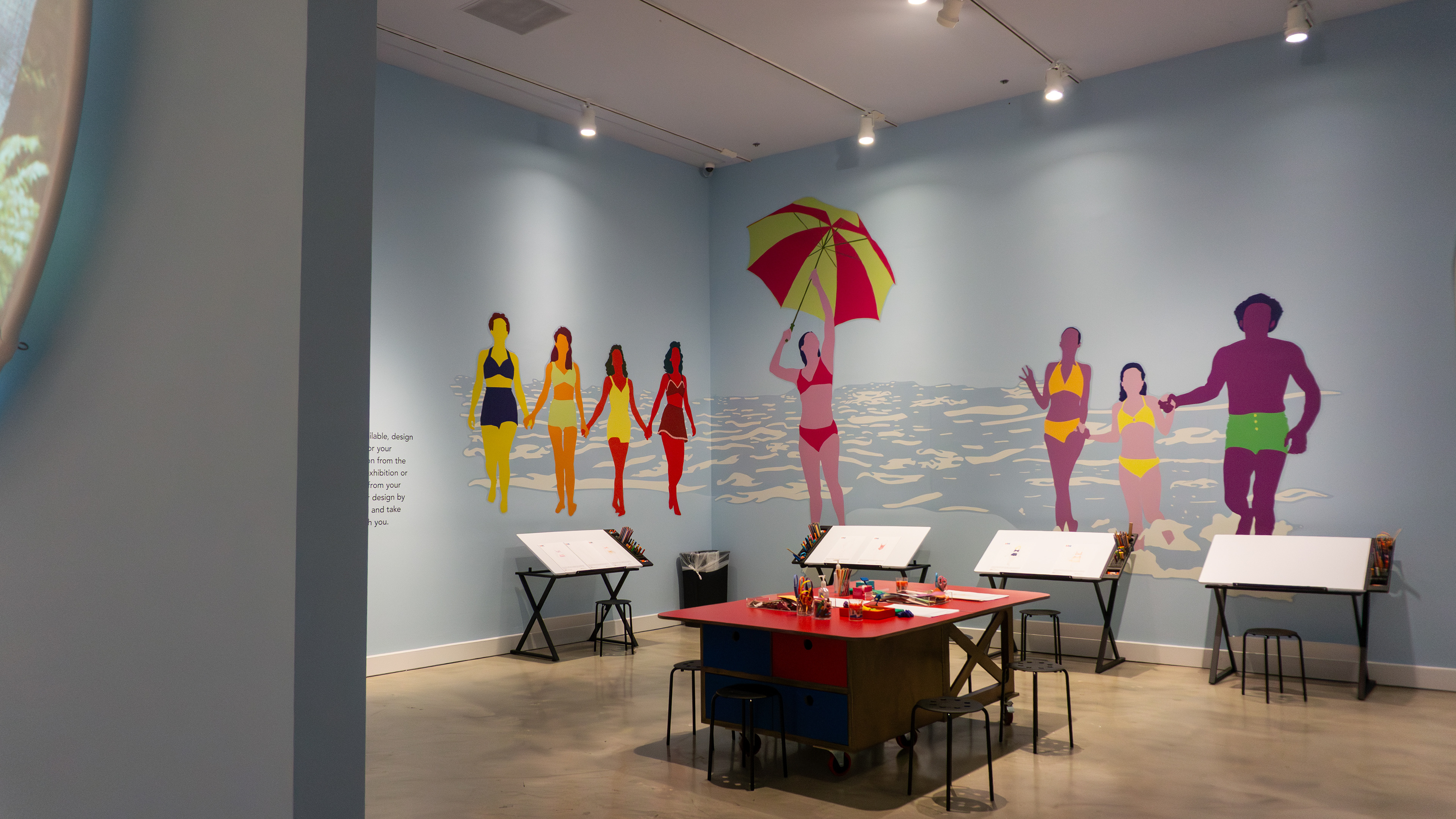 I designed all graphic components of the exhibition, including labels, signage, and large-scale wall graphics. To enhance the storytelling, I designed custom illustrated pattern and texture details inspired by the swimsuits on display for each label, allowing visitors to engage more closely with the materials and craftsmanship. In the interactive activity area, I designed graphics and activity sheets that invited visitors to create their own swimwear designs inspired by the exhibition. The wall graphics were inspired by photos from HistoryMiami’s archives and used color palettes reflective of each time period to create a cohesive visual narrative throughout the space.